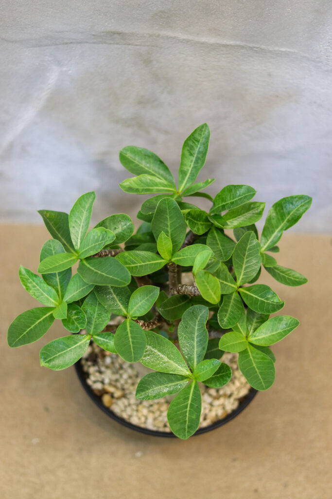 - ぷっくりと膨らんだ幹と、艶やかな緑の葉が特徴的なアデニウム・アラビカム。インテリアに取り入れるだけで空間に個性と存在感をプラスしてくれます。